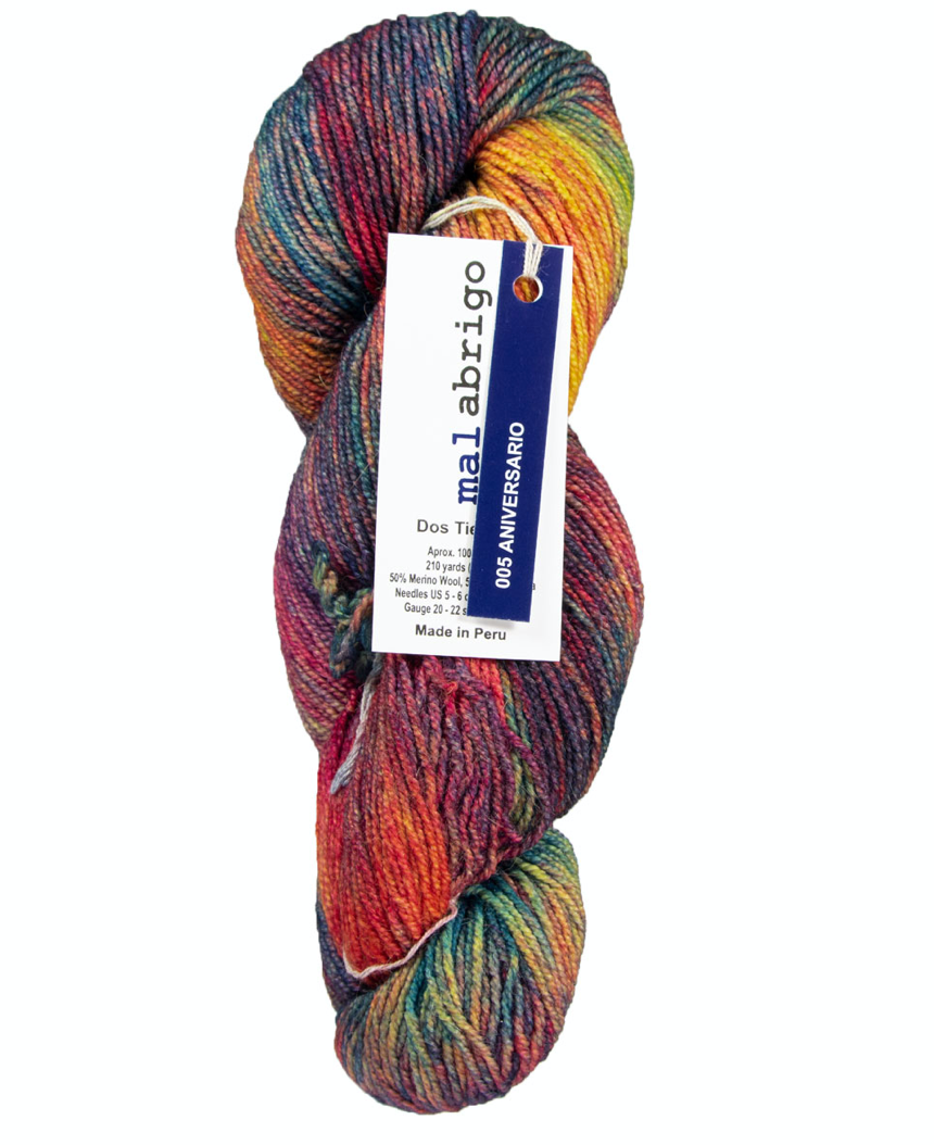 Dos Tierras means Two Lands, reflecting the sources of the two amazing fibers found in this ultra-soft yarn. By spinning together 50% of our fine Uruguayan Merino wool with 50% baby alpaca from Peru we have created a DK weight yarn that is as versatile as it is beautiful. And when we combine the good stitch definition and drape of this four ply yarn with our amazing kettle-dyed semi-solid and variegated colors you have the perfect palette to help show off your stitch work.