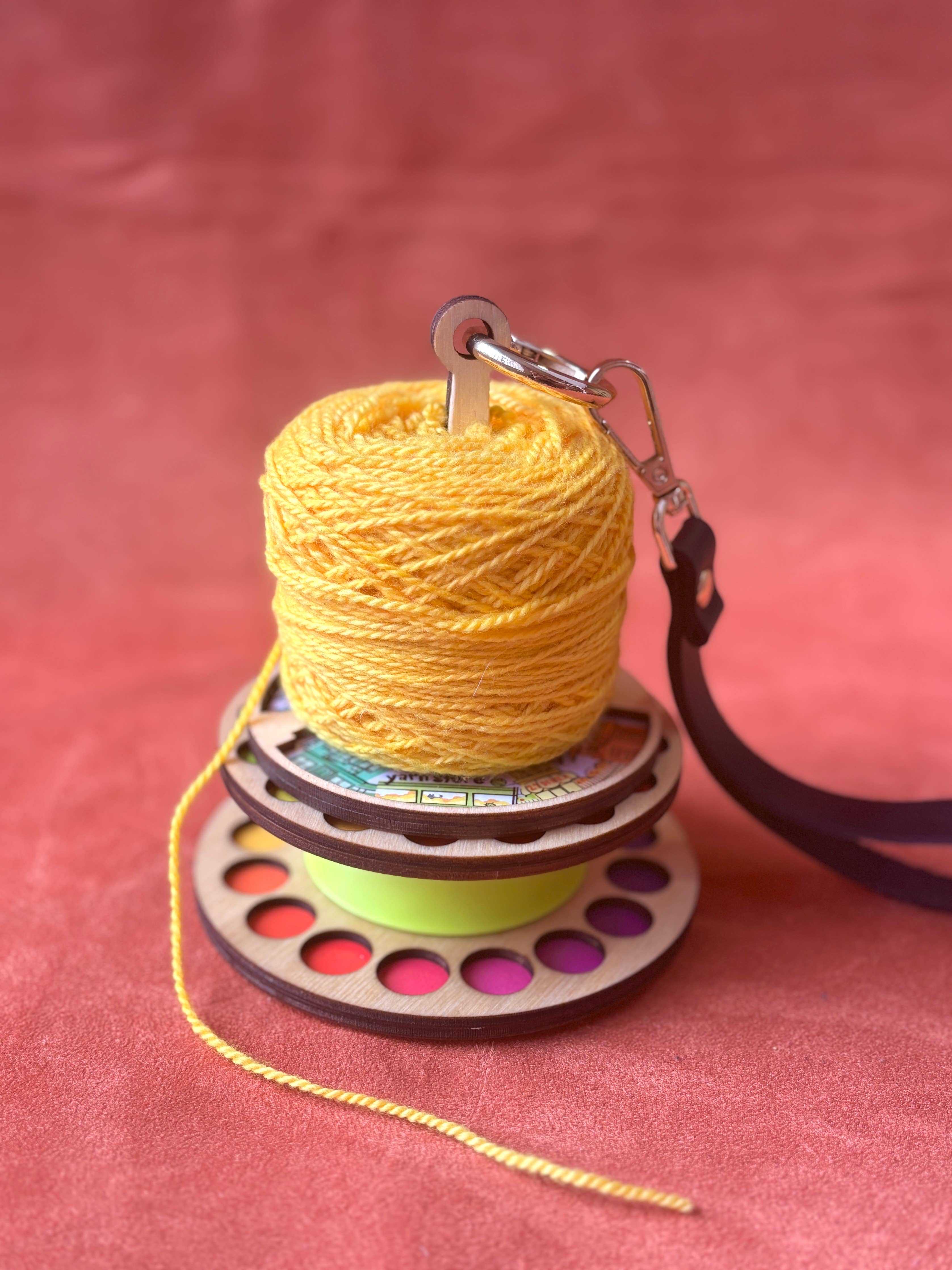 Meet our long awaited newest addition, the Whirl! The Whirl adds even more versatility to your Mini Minder allowing it to become one of the smoothest yarn spinners on the market. Simply stick your Mini Minder in, twist for extra stability, unclip the strap, and start stitching! The Whirl is only compatible with the Original Mini Minder.